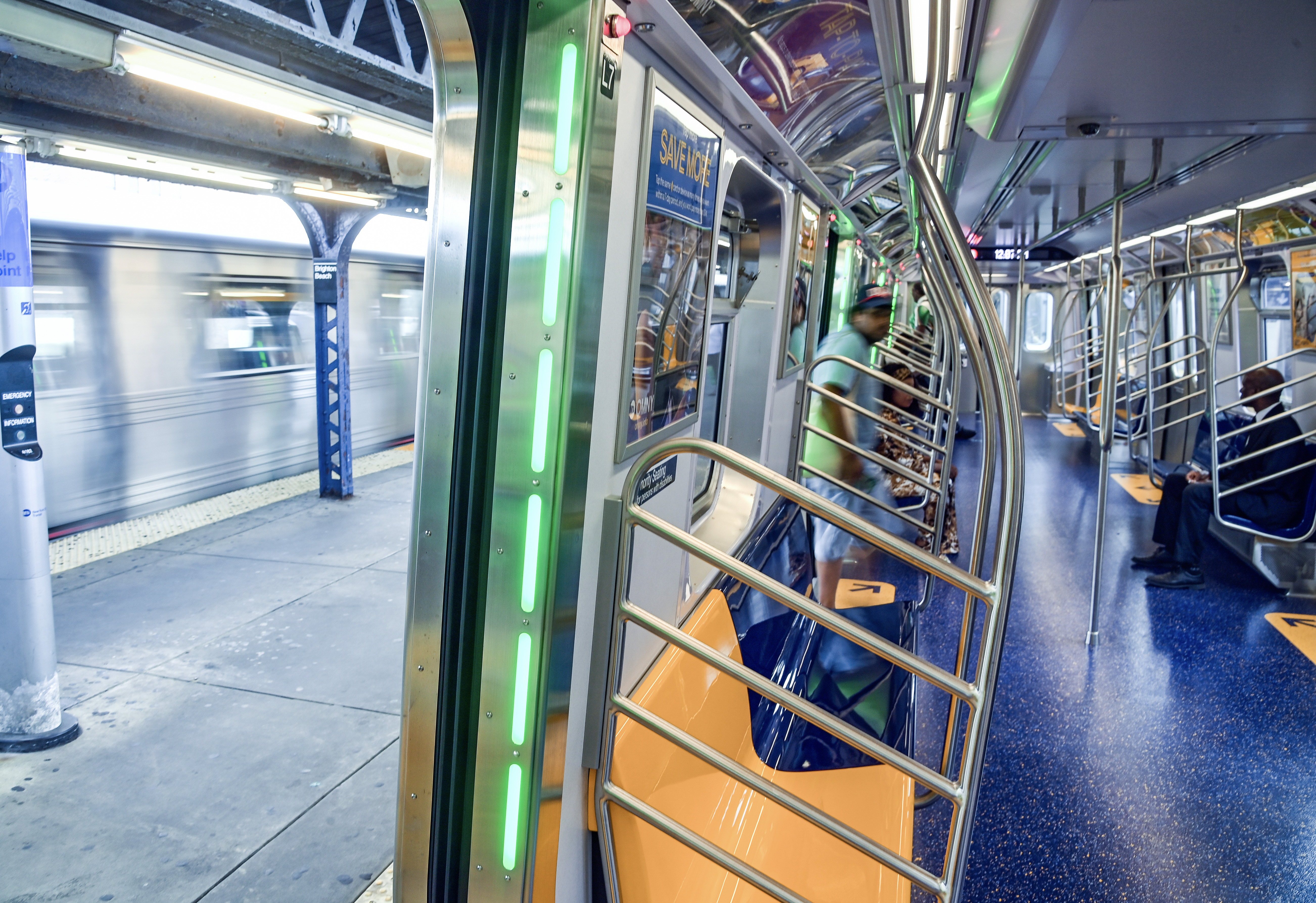 Above: Inside one of the new train cars being unveiled in New York. Courtesy of the MTA.