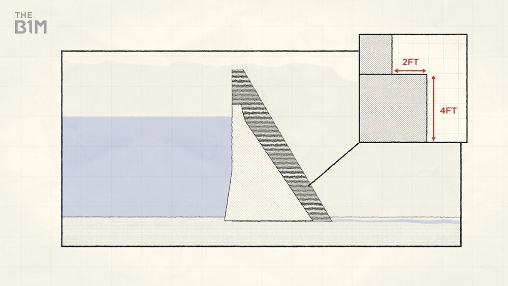 Above: Each step on the new dam is four feet high and set back two feet from the one underneath.