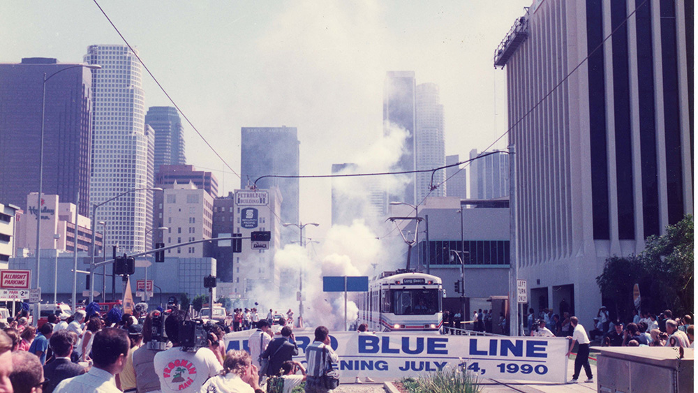 Above: The opening of what was then called the Blue Line in 1990. Image courtesy of Metro Transportation Research Library and Archive.